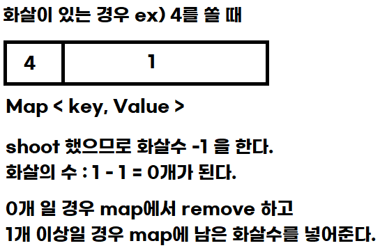 제가 구현한 방법은 map에 풍선 높이의 화살이 없을 경우