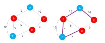 가중치가 있을때 ( 거리, 비용 ) 스패닝 트리를 가장 적은 가중치로 완성 하는 트리