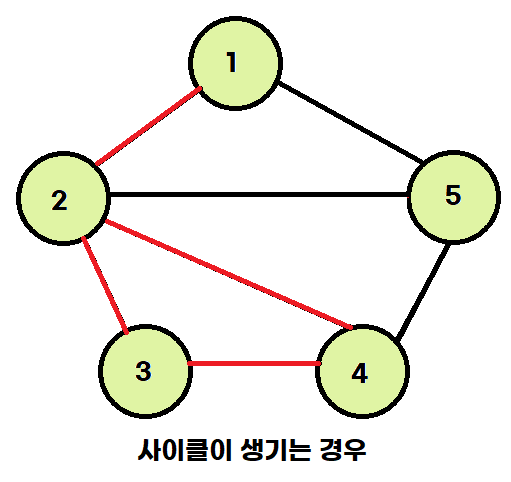 if( getParent(시작 노드) != getParent(도착 노드)) union( 시작 노드, 부모노드 )