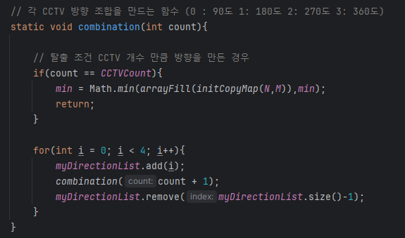 // 탈출 조건 CCTV 개수 만큼 방향을 만든 경우