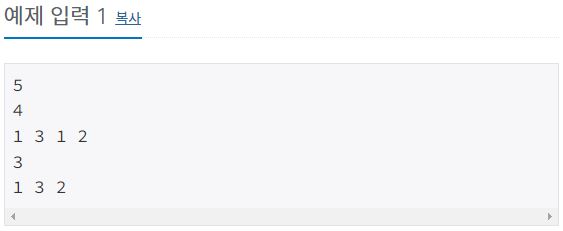 다섯째줄 배열M의 원소 ( 0 <= 원소 <= 100만 )