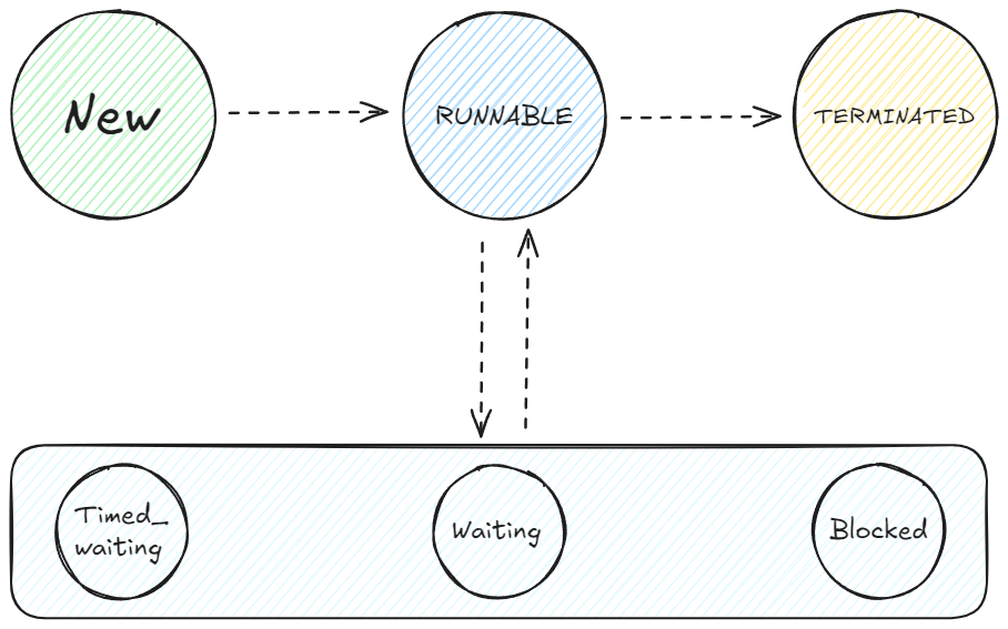 Runnable : 스레드가 실행 중 혹은 실행 될 준비가 된 상태 ( thread.start )