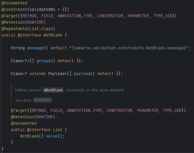 Hibernate Validator 등록된 NotBlankValidator 입니다.