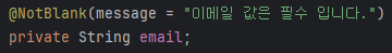 - message = 검증에 실패 하였을때 메시지를 나타냅니다.