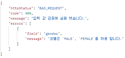 - 성별에 바인딩 되지 않는 값( "test")은 Json parse 실패 합니다.