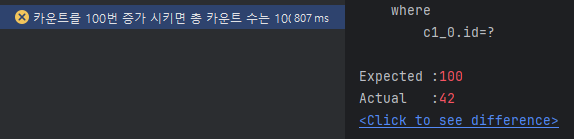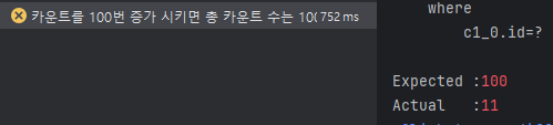 동시성 문제로 인해 카운트가 재대로 증가 하지 않습니다.